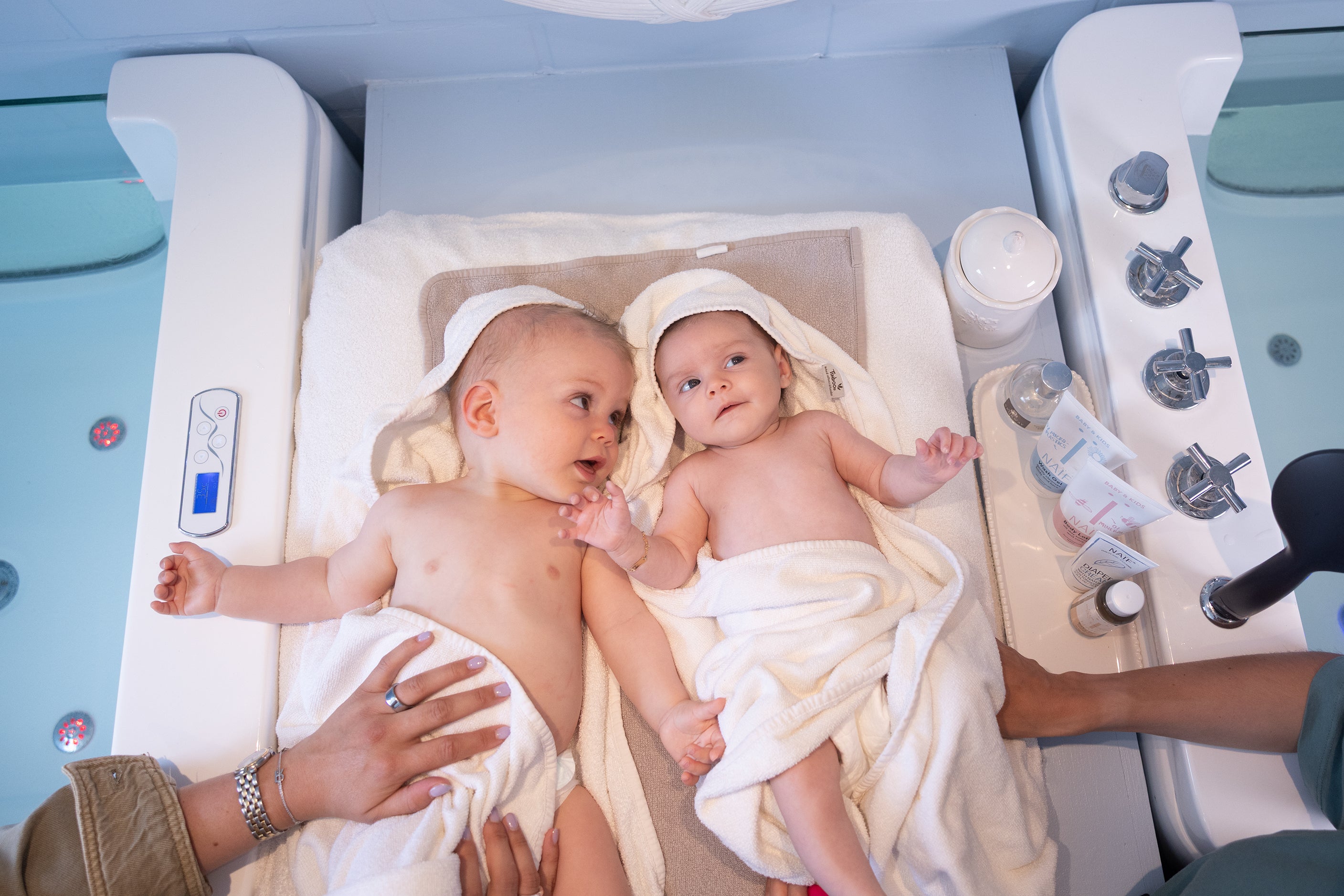 Samen ontspannen is nóg leuker! Tijdens de Duo Splash genieten twee baby's tegelijk van een volledige wellnesservaring – perfect voor tweelingen, vriendjes of neefjes en nichtjes.